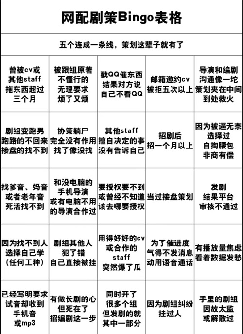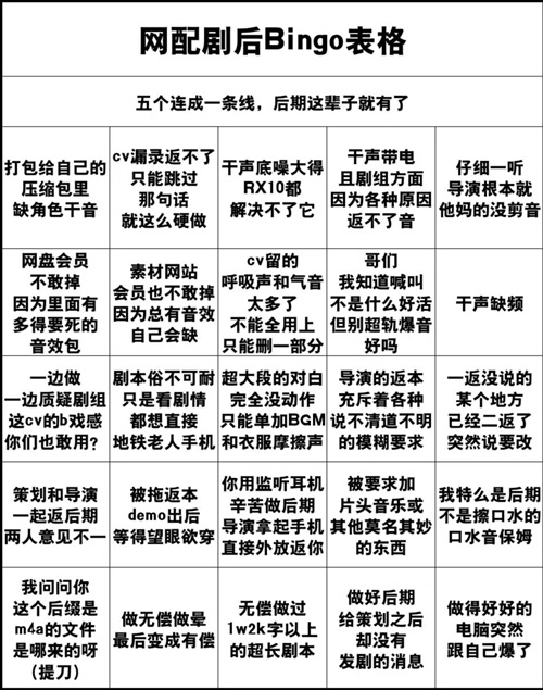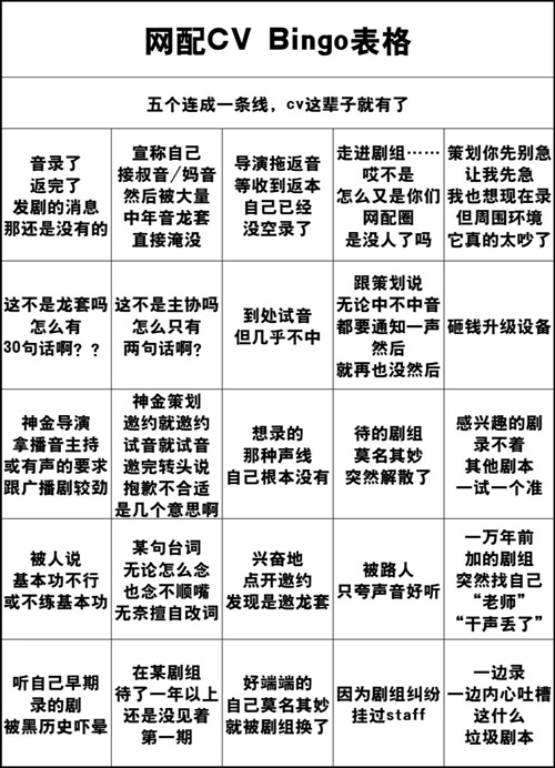 以上内容,整理源自 配音号,网配Bingo表格引用自 塔酒。