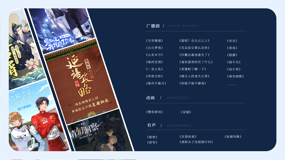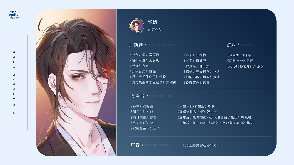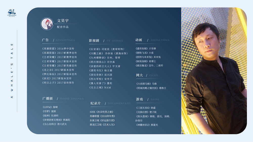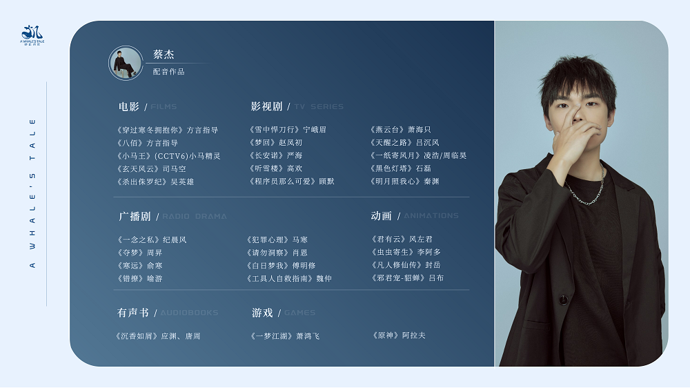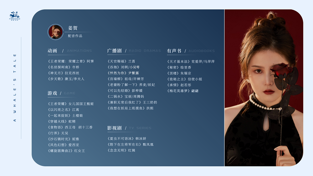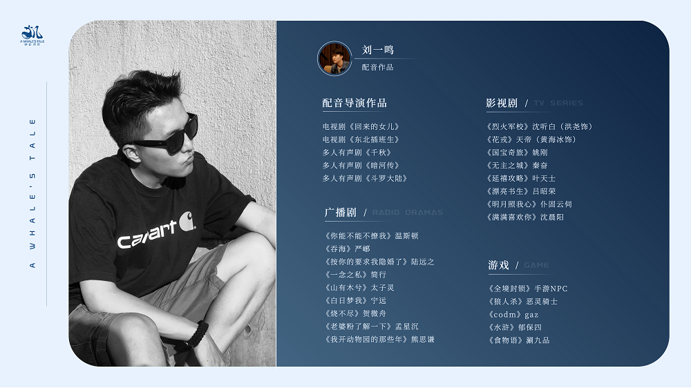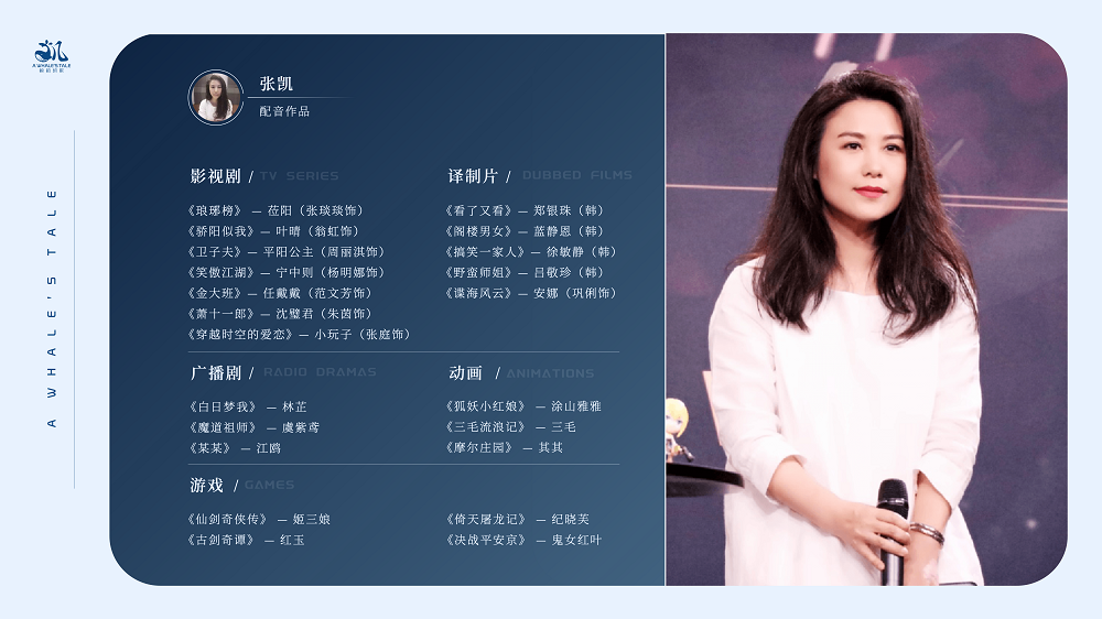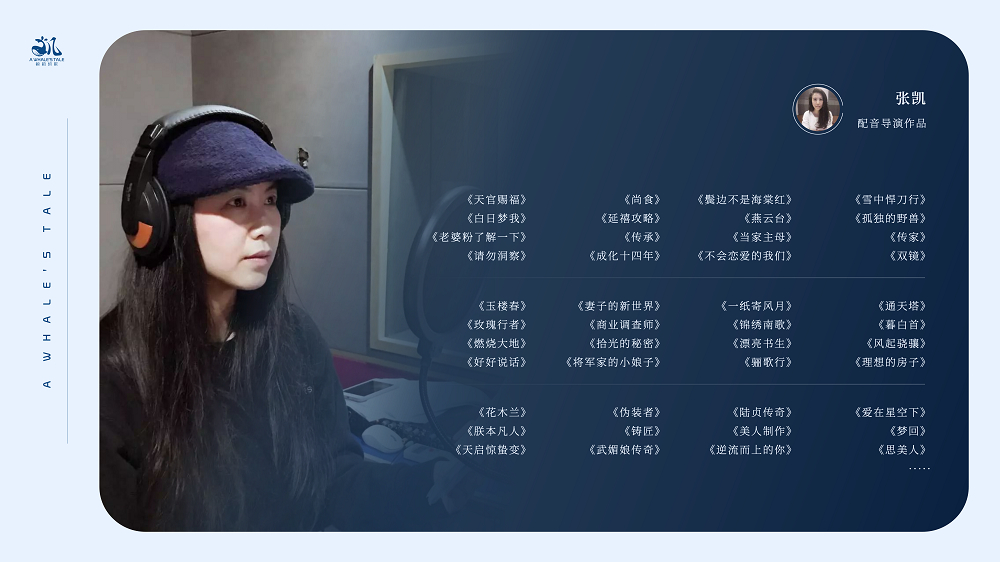 鲸韵凯歌是由资深配音演员、配音导演张凯带领的配音团队。涉及影视剧、广播剧、国漫动画、网大、有声漫画、有声多人剧等诸多领域,先后为百余部作品配音。行业OG加新生力量的组合,让作品更有活力,锦上添花。